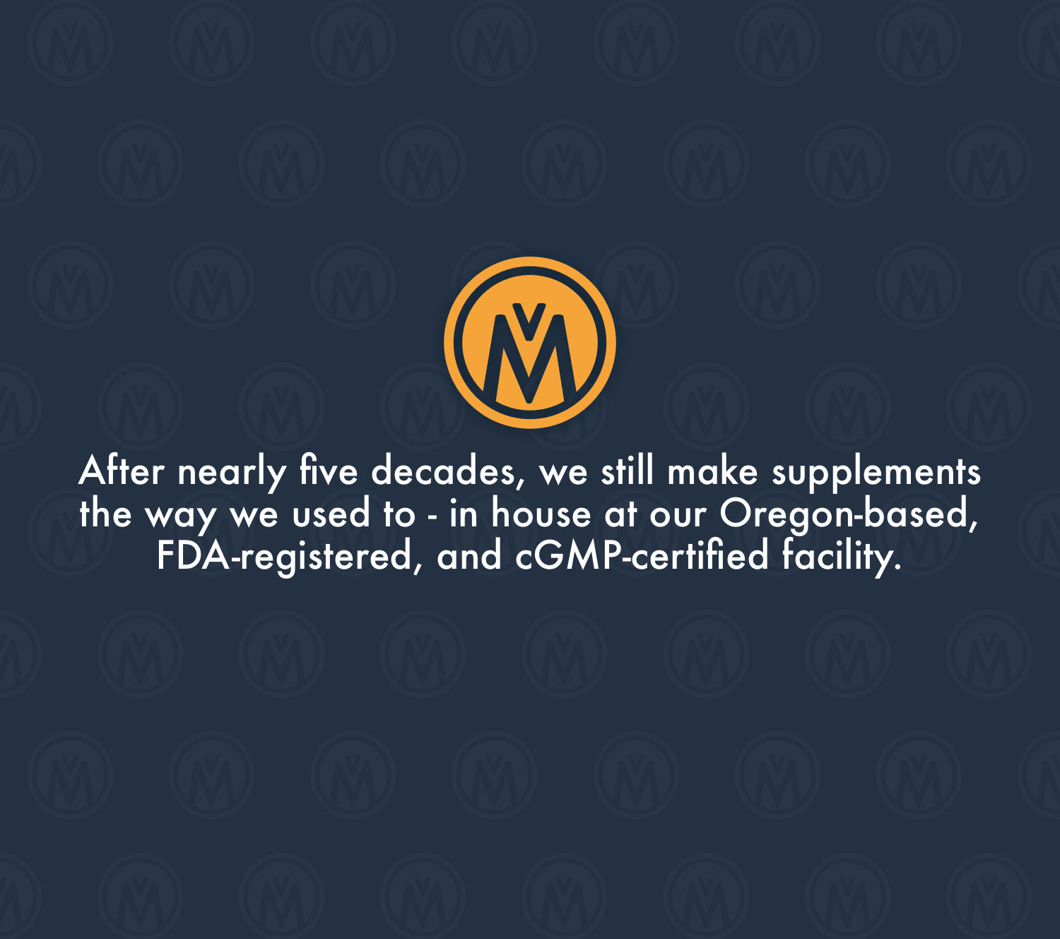 Unlike many other brands, we manufacture all of our own products in our multi-million dollar Class 1 Pharmaceutical licensed, cGMP, and FDA registered facility right here in Mt. Angel, Oregon. We control quality from beginning to end, and every step in between. We stand behind those products, their integrity, and their quality.