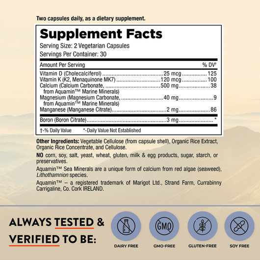 - Contains Aquaminâ„¢, an all-natural plant-source multi-mineral from red algae (seaweed) which ensures the necessary daily amount of bioactive calcium