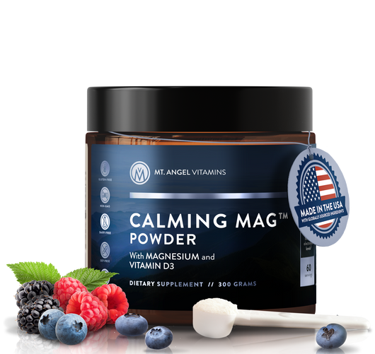 Calming Mag Powder is your nightly magnesium base. Customers often combine it with other Mt. Angel sleep, mood, and stress formulas.