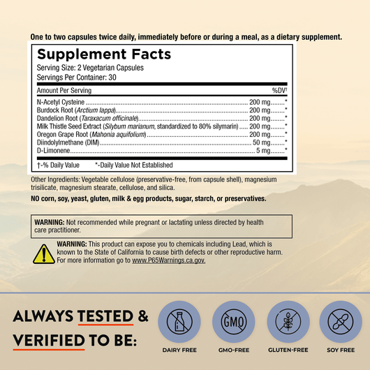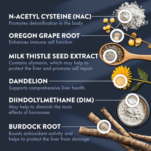 - N-acetyl cysteine (NAC): A derivative of the amino acid L-cysteine, NAC helps to protect liver cells by scavenging free radicals and is known to promote detoxification in the body.