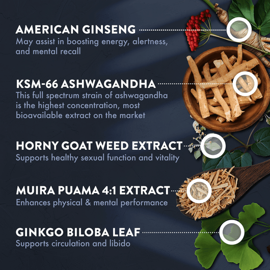 - Muira Puama and Ginkgo Biloba support healthy sexual function