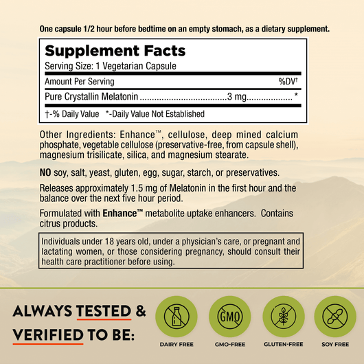 • Three milligrams of melatonin in a timed release capsule for overnight support.*